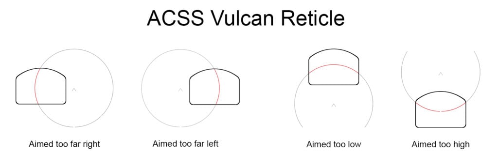 This model features the revolutionary, patent pending ACSS Vulcan reticle. It is a 10 MOA red chevron with a large ring to help line the reticle up quicker.